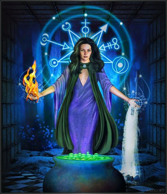 For these reasons she is seen as a patron Goddess of witches and wizards. She is also associated with the moon, fertility, science, prophecy and poetry.