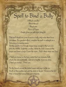 This spell should not cause harm to a bully, only make them leave you alone. For greatest effect, complete the spell at midnight on a Saturday of a waning moon.