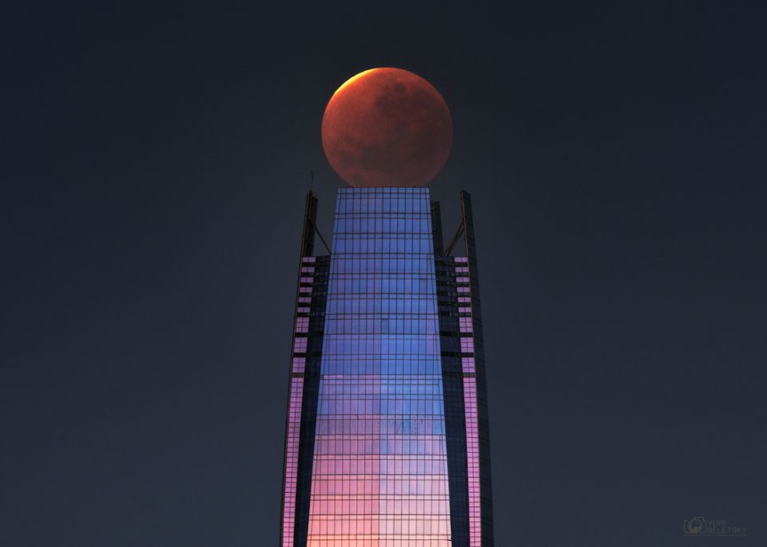 Lunar Eclipse over a Skyscraper