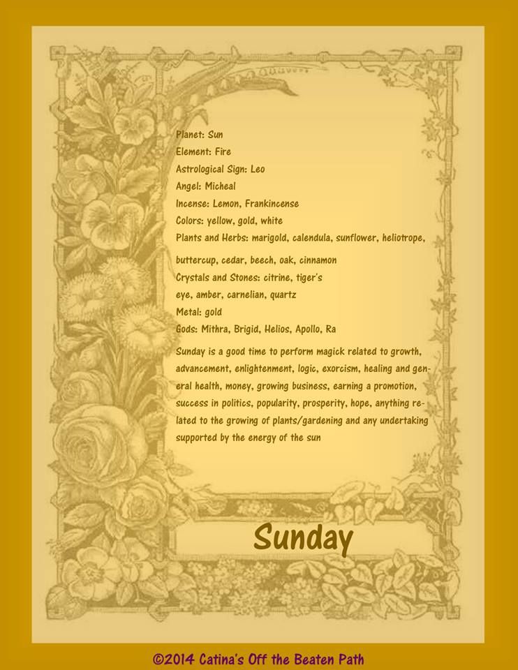 Some Witchcraft/Magickal Correspondence Digest for Sundy – Printable