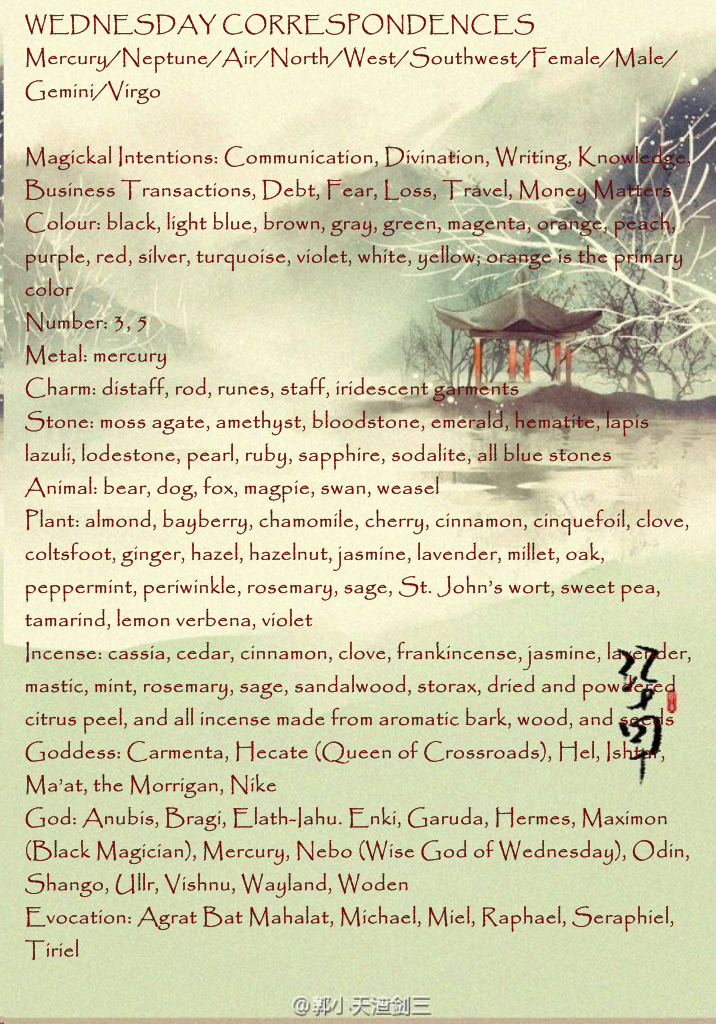 Some Witchcraft/Magickal Correspondence Digest for Wednesday