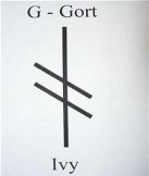 Ivy, a symbol of strength and determination to the Druids, is the twelfth letter of the ogham alphabet, gort, and the eleventh month in the Celtic tree calendar, representing September 30th to October 27th.