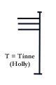 Tinne corresponds to the holly tree and to the letter T. The name tinne is related to the Old Irish word teann, meaning strong or bold, and the Irish and Scots Gaelic word teine which means fire. Therefore, the ogham symbol is associated with strength and power. It’s also sacred to the Celtic smith god Govannon or Goibniu, and the Saxon smith god Weyland, who are associated with strength, endurance, and the attainment of skill.