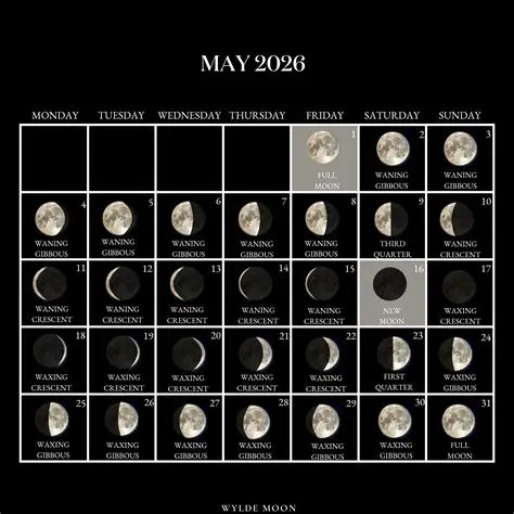 The Moon phase for May 1st, 2026 is the Full Moon phase. In this phase, the moon is 100% illuminated when seen from Earth (hence the name Full Moon).