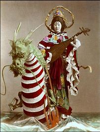 A relatively minor deity of Chinese mythology, Tu Er Shen—or Hu Tianbao, as he was known when he was mortal—is the god of homosexual love and marriage. Born during the Qing dynasty, Hu Tianbao found himself attracted to an official of the local government, spying on him naked through a hole in his bathroom wall. When his peeping was discovered, Tianbao was beaten to death. Moved by his unrequited love, the gods of the underworld took pity on him and restored him to life as the deity of homosexual relationships.