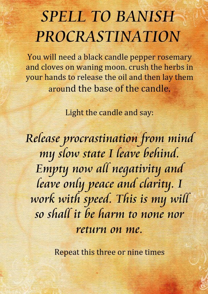 Simple spell for ending procrastination without ingredients. Stop procrastinating once and for all doing this easy ritual and get stuff done once and for all!