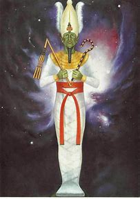 He was commonly depicted as a pharaoh with a complexion of either green (the color of rebirth) or black (alluding to the fertility of the Nile floodplain) in mummiform (wearing the trappings of mummification from chest downward).