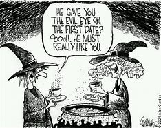 Seeing a girl at the supermarket. She’s wearing a Pentagram, a silver High Priestess Bracelet, a runic belt buckle, a Necklace of acorns and has the Goddess tattooed on her shoulder and is wearing a t-shirt that says ‘Sexy Witch’. So you go up to her and ask, “Are you in the Craft?” and she hisses back, “Shhhh! It’s supposed to be a secret!”