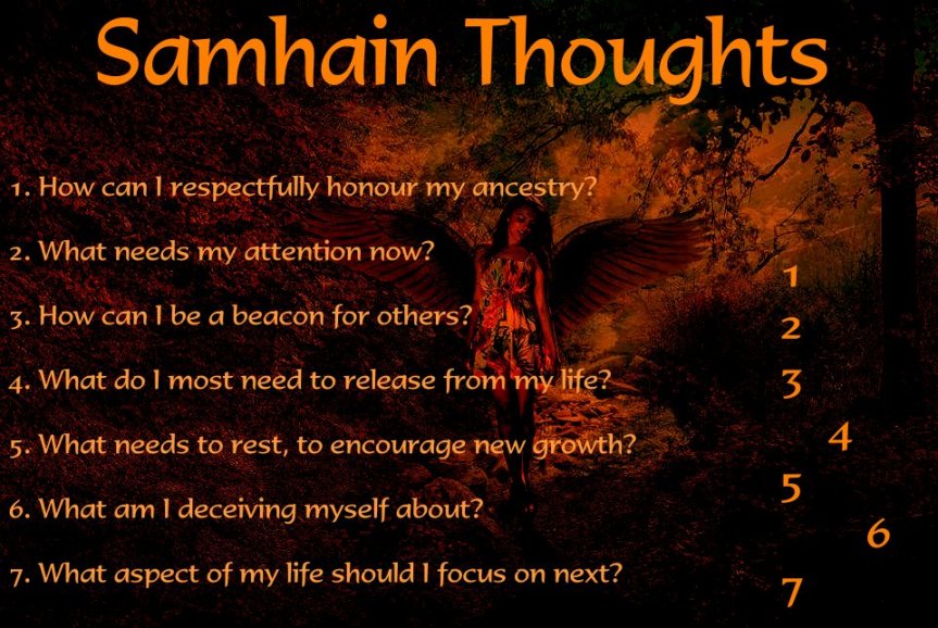 Samhain is the harvest of the soul. In some traditions it is when the souls of those who died since the last Samhain move on, leaving our plane behind. In other traditions this is the time when the dearly departed return to pass on messages to us. Whatever the path, this is the time to honor the dead. Renew your home protection spells and start closing up in preparation for winter. Any garden or outdoor tools or furniture that are no longer needed should be cleaned up and put away with thanks for their service. Prep your garden and yard for winter, even if your garden, even if your garden is only a couple of planters of herbs. Pull out your heavier bedding and give it an airing out. Using needle and thread, add a few stiches of blue thread to a corner or inside seam to protect your sleep during the long, dark nights. Divination plays a role in Samhain. Ask your oracles what you need to lay to rest or end for the year.